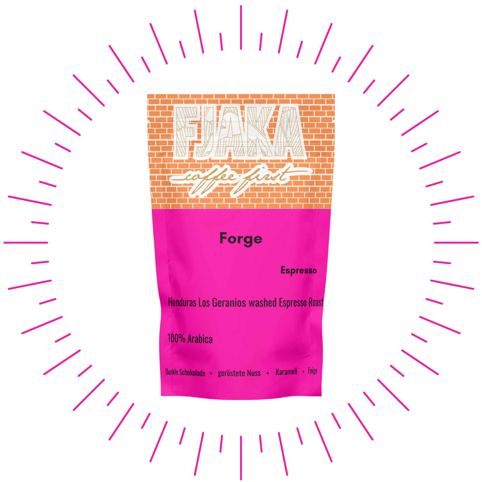 Forge liefert einen cremigen, vollen Espresso mit Schoko- und Karamellnoten, unterstützt von einer feinen Beerennote – perfekt für den Siebträger.