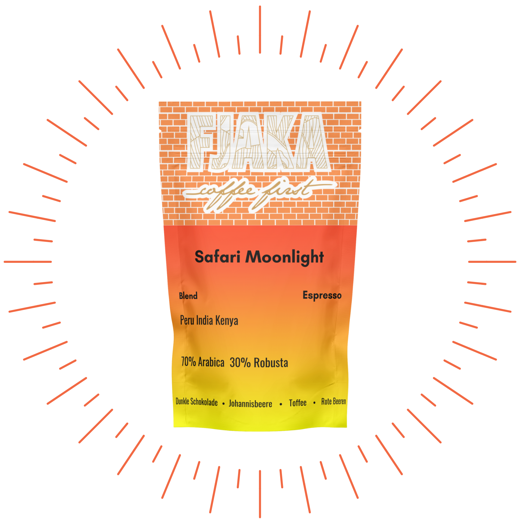 Safari Moonlight ist ein kraftvoller Espresso mit afrikanischen Beerenaromen, südamerikanischer Schokolade und indischer Robustakraft. Vollmundig, würzig und tief – ein Espresso für Entdecker, der in jeder Tasse eine kleine Weltreise liefert.